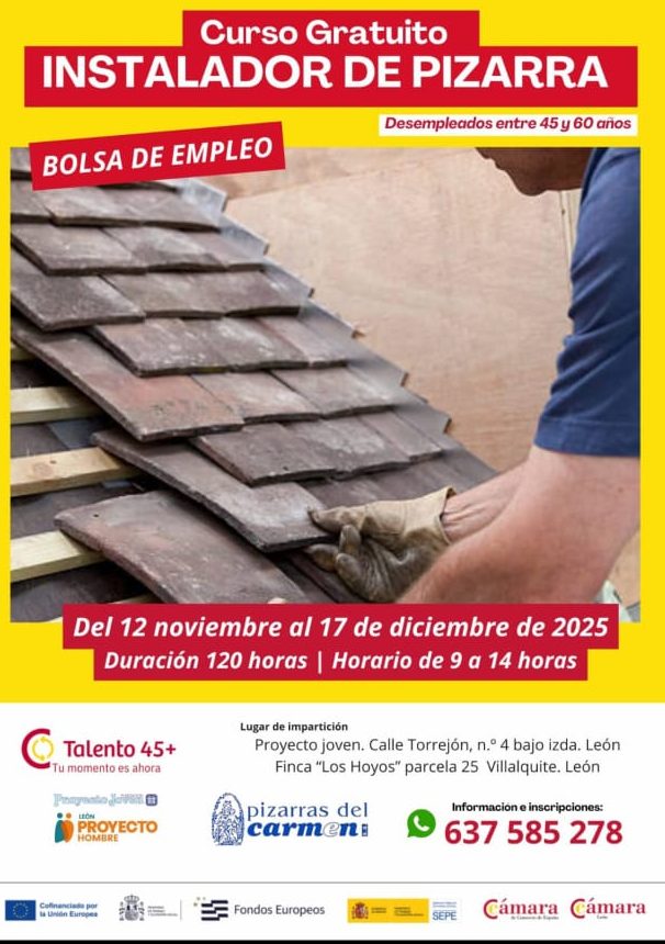 Proyecto Joven · Proyecto Hombre León en colaboración con la Cámara de Comercio y la empresa Pizarras del Carmen, pone en marcha un curso gratuito de Instalador de Pizarra dirigido a personas desempleadas de entre 45 y 60 años. Esta acción formativa se enmarca en el programa Talento 45+, que promueve la inserción laboral de personas con experiencia profesional en situación de desempleo.