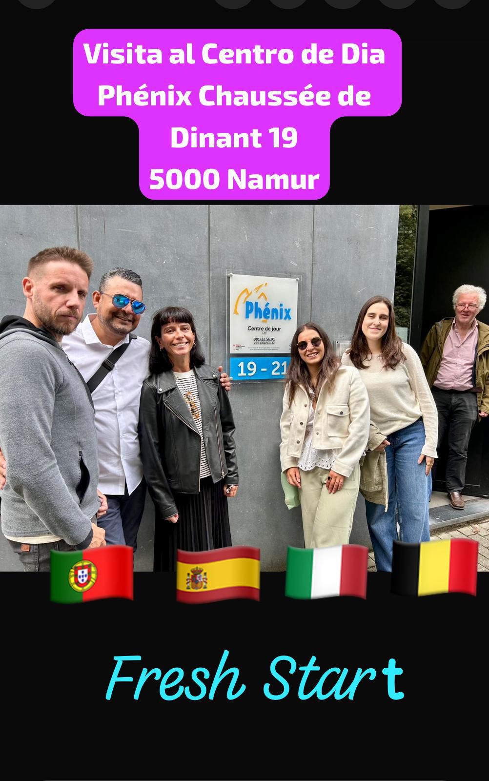 El equipo terapéutico de Proyecto Joven · Proyecto Hombre tuvo la oportunidad de visitar varias ciudades de Bélgica como parte del programa ‘Fresh Start’ (Erasmus +) durante la primera semana de este mes de septiembre. En esta ocasión nuestros terapeutas visitaron al Phoenix Namur: un programa diurno para adolescentes y adultos con adicciones. Phoenix se basa en un modelo de enfoque comunitario, que proporciona a los usuarios un entorno libre de drogas donde conviven juntos de forma estructurada y organizada para promover el cambio y la rehabilitación.